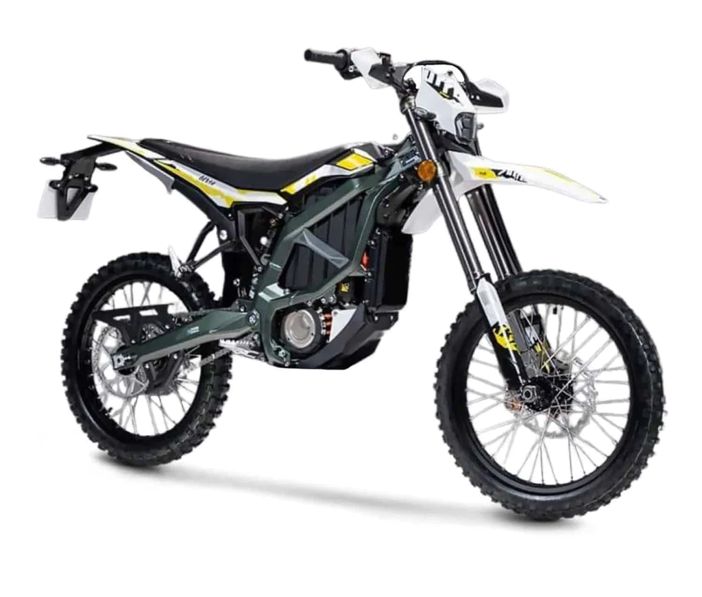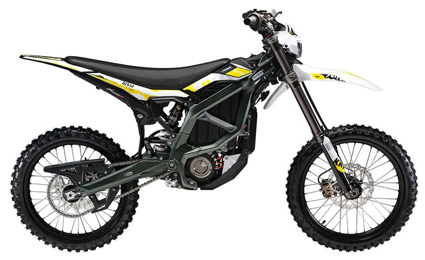 Das Ultra Bee ist ein elektrisches Offroad-Motorrad von Sur Ron. Es wird von einem kraftvollen 6-kW-Motor und 12,5 kW Spitzenleistung angetrieben, erreicht eine Höchstgeschwindigkeit von 90 km/h und bietet eine Reichweite von bis zu 140 km dank seines Lithium-Ionen-Akkus. Das Motorrad verfügt über eine robuste Aluminiumrahmenkonstruktion, voll einstellbare Aufhängung und ein leistungsstarkes Bremssystem. Die großen 19-Zoll-Räder und Reifen sorgen für hervorragende Traktion auf unterschiedlichem Terrain. Sicherheitsfunktionen wie automatische Abschaltung bei einem Sturz und ein Batteriemanagementsystem sind ebenfalls vorhanden. Das Sur Ron Ultra Bee bietet eine hervorragende Leistung und ein aufregendes Fahrerlebnis auf Offroad-Strecken.